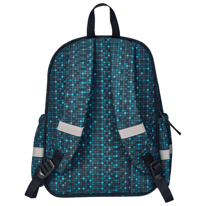 dimenzija: 26x35x12 cm; remenčići za podešavanje; reflektirajući, sigurnosni djelovi; 1 odjeljak sa zatvaranjem na zip; 1 džep na zip s prednje strane; pretinci na bočnim stranama; sirovinski sastav: poliester